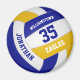 This volleyball themed magnet with custom team colours features the realistic image of a volleyball with blue, gold and white panels upon which you can customize the player's name & jersey number plus school or club name and mascot name in a varsity letter style font - by katz_d_zynes