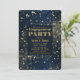 Blue & Gold Sparkling Lights Glam Engagement Invitation