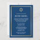 Une invitation classique Bar Mitzvah avec un design Star of David en or et bleu foncé. Moderne et formel. Les dessins sont des illustrations/graphiques à papier plat - PAS VRAIMENT GOLD FOIL.