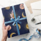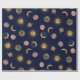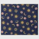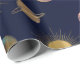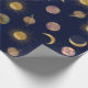 Blue Gold Sun Moon Planets Space illustration Wrapping Paper