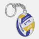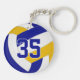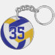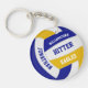 This team colours volleyball themed keychain for boys or girls features a realistic looking blue, gold and white volleyball upon which you can customize the player's name, jersey number and court position, plus school or club name and mascot name in a varsity letter style font - by katz_d_zynes