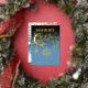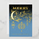 Customize your family name on this blue and gold typography treatment of "Merry Christmas" with hanging vintage ornaments in real foil. Add your family photo to the back of the card.