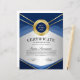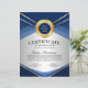 Professional blue and gold vertical certificate of appreciation flyer template featuring a grey gradient background and a blue and shiny gold medal with a leaf outlining. Perfect for school, businesses, churches, and more! Customize the certificate to your liking.