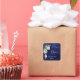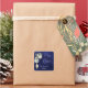 For a Christmas party favours or gift wrapping. A navy blue uneven coloured background. Decorated with white and gold baubles and some greenery and a pine cone. Personalize and add your name, year. Text: Merry Christmas