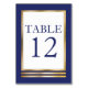 Simple, elegant and modern blue and white with gold tone (printed) border table number card design. Original design by Holiday Hearts Designs (all rights reserved).