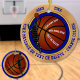 Blue Gold White Personalized Basketball Ornaments or You or Designer Linda, can CHANGE the Blue and White COLORS. 6 Text Boxes for the Year, Player or Coach Name, Number or Jersey Number, Team Name, Championship Ornament Message or Delete any or all text. CALL Designer Linda: 239-949-9090 to change the Colours, Product or Design. We can design many different basketball gifts for players.