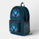 Blue gothic heart surrounded by magical flowers printed backpack