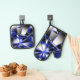 Oven Mitt and Pot Holder Set printed with Blue Gradient Colour Fill Mechanical Drawing Mosaic broken glass mosaic style in blue, grey, black and white artwork design illustration by TheFabricSeal at Zazzle #ZazzleMade https://www.zazzle.com/store/thefabricseal