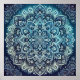 Intricate blue gradient mandala design featuring detailed patterns and symmetrical artistry. This captivating artwork blends calming shades of blue with elegant mandala elements, ideal for yoga enthusiasts, meditation lovers, and those who appreciate bohemian or spiritual aesthetics. Add a touch of tranquillity and sophistication to your wardrobe or home with this versatile and mesmerizing design.