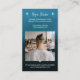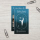 Modern navy blue green turquoise gradient ombre with stars, geometric shapes and yoga pose silhouette Yoga instructor studio teacher business card. Add your photo, logo, social media , address and time schedule.