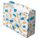 For the graduate, this gift bag has a pattern of blue graduation hats with gold tassels and diplomas tied in red. The images are placed on a white background. Both sides of the bag have the same image.