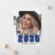 Classic Modern Graduation Announcement. The front features a full-page photo with a white gradient at the bottom that fades seamlessly into the image. Over the gradient, "2026" appears in a bold blue classic school-style font. Just above it, "Class of" is written in elegant black script. To the left of the year is a small, customizable graduation cap icon. Below the year, the graduate's name and school name are prominently displayed. All colors can be customized to match school colors or personal preferences.