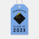 Graduation congrats gift tags for your favourite graduate, featuring black cap with gold tassel on a light-blue background for high school and college grad. Edit text to add year. Add grad's name to further customize.