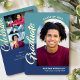 Be proud, rejoice and showcase this milestone of your favourite grad! Send out this stunning, simple, modern, personalized 4 photo announcement invitation for an event to remember. On the front, bold, graphic, real gold foil handwritten script calligraphy, sans serif typography and a photo of your choice in an arch overlay a dusty turquoise and navy blue background. On the back, 3 additional custom photos and your message overlay turquoise and navy blue. Here you can add your personal note, next school they’re attending, party information, etc. Matching and coordinating thank you cards, hand fans, napkins, address labels and other graduation goodies are also available in this trendy and minimalist collection. Guaranteed to add stylish fun to their special occasion!
