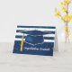 Celebrate with a graduate with this bright and strong graduation card. Large stripes and confetti make up the background, with a blue cap and yellow gold tassel. Great for guy or girl.