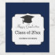 A blue graduation Class of 2025 wine label. The class of wine label features a graduation cap with a happy graduation message. You will be able to easily personalize with the graduate's name and graduating year. This graduation wine label would make an elegant touch to any graduation party.