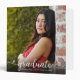 Let your favourite grad be proud, rejoice and showcase their milestone with this stunning keepsake scrapbook custom photo memory album. A fun, playful visual of white script handwriting and cute, playful hearts, along with her name, and class year, overlay a photo of your choice. Personalize the custom text with your grad’s name and class year. White type on the spine and a white grad cap icon on the back overlay navy blue backgrounds. Matching invites, thank you cards, cap toppers, napkins, plates, fans and other graduation goodies are also available in this trendy and stylish collection. Guaranteed to preserve cherished memories of their special occasion!