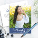 Blue Graduation Photo Chic Script Hearts Thank You Postcard