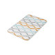 Enhance the aesthetic of your bathroom with this sophisticated bath mat design. The elegant combination of modern pastel tones, including shades of blue, orange, and gray, creates a stylish and contemporary look. The geometric seamless pattern on a crisp white background adds a touch of refinement to your space. Elevate your bathroom decor with this chic and trendy bath mat.