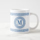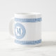 Elegant Blue Greek Key with Optional Greek Initial Specialty Mugs. Our modern take on this classic design. Please note that customization may be required to ensure your particular initial is centred visually. Click "Customize" to change font style, colour, size or to reposition font. The Greek Key is symbolic of the term "meandering" derived from the river located in present-day Turkey, Maiandros or Maeander, and is also associated with the Greeks, and basically has to do with the effect of winding, especially as pertains to design.