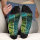 This image features a vibrant swirling design that captivates with its rich colours of blue, green, and yellow, creating a harmonious visual experience filled with energy and movement. An iridescent touch adds depth, making the colours shift with light.