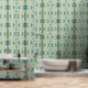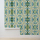 Blue, Green, and Cream Geometrical Pattern Wallpaper