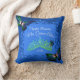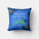 Personalize name and message on this blue decorative border, Quinceanera throw pillow. Blue and green butterflies Quinceanera keepsake. Versatile for royal blue or navy blue theme colours. Butterflies and tiara can easily be resized and repositioned on throw pillow.