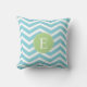 Blue Green Chevron Monogram Throw Pillow
