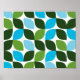 Blue, green, cool, unique, trendy, urban abstract illustration pattern art made with leaf like geometric shapes in flower abstraction. Modern, natural graphic design artwork. Tones of green and blue colours on white background.