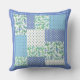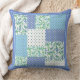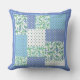 Blue Green Faux Patchwork Snowdrops and Polkas Throw Pillow