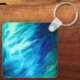 Blue Green Feather Abstract Keychain