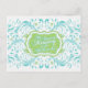 The text on the back of this elegant, yet bright and cheerful, turquoise or aqua blue (robin's egg blue), lime (chartreuse) green and white abstract floral memory card for the bride to be is fully customizable. You can change it using the personalize option. For more extensive changes to the bridal shower memory card, including changing the font, font colour, or font layout, choose the customize option. This pretty favourite memory of the bride-to-be card can be enclosed in the matching bridal shower invitation so that wedding shower guests can fill out the back with their favourite memory and bring the card with them to the shower as a wedding keepsake for the bride to be. The matching invitation is shown below. NOTE: This is a flat printed design without any 3D or raised embellishments.