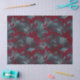 This design showcases blue-green stenciled flowers on a red win-burgundy background. Great for decoupage art, paper crafts, or wrapping gifts.