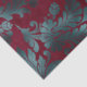 Blue Green Flowers on Wine Red Decoupage Tissue Paper