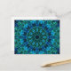 This beautiful kaleidoscope shows a design of green and blue swirls in a repeating pattern.