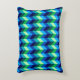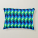 An accent pillow featuring a colourful, ombre pattern design of chevrons in lime green, royal turquoise, ocean blue and sky blue.