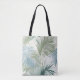 Bring a touch of tropical elegance to you with this stunning design featuring a serene blend of blue and shades of green palm leaves. The lush overlapping leaves create a tranquil pattern, capturing the breezy essence of nature. The soft gradient hues evoke a refreshing and relaxed feel that is perfect for those who love the soothing beauty of palm leaves. This nature-inspired bag offers both artistic flair and a calming aesthetic, perfect for doing your shopping in style or for pairing with a sundress to the beach.