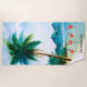 Blue Green Beach Towel with watercolor blue green beach art and pink flamingos.Use personalize this template option to change the text | Use customize further option to change the text style, size and colour if required.