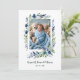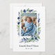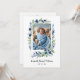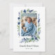 The delicate floral frame in shades of blue and green adds a touch of freshness and vibrancy to the invitation, while the designated photo space allows parents to share a cherished image of their child with loved ones. This invitation serves as a delightful way to invite friends and family to be a part of such an important moment in the family's life.