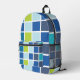 Blue Green Squares Chequered Printed Backpack