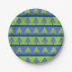 Blue Green Stripes Christmas Tree Paper Plate