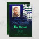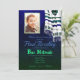 Announce your Bar Mitzvah with vivid prayer shawls overlaying dark blue and green brush stroke texture. Vivid blue RSVP cards with striped tallit and Torah scroll, return address labels, and other blue and/or green Bar Mitzvah accessories will complete the look for a modern traditional celebration. Hints of shiny silver, teal, royal blue, and bright green on all cards in this collection.