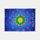A rotational-type fractal image resembling 1960s tie dye; multi-coloured with blues and yellow predominant. Add your own text.