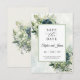 Save the Date card, wedding invitation, floral blue and green bouquet watercolor tones pastel colours classy