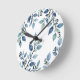 Blue Green Watercolor Leaves Botanical Design 376 Round Clock