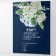 Blue Green White Hydrangeas on Navy Wedding Tri-Fold Invitation