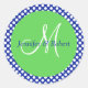 Custom Green Blue White Polka Dot Monogram Wedding Envelope Stickers with names and date perfect for wedding invitations.