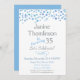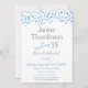 A cute birthday invitation in blue and grey, featuring whimsical blue confetti. This fun birthday invite is perfect for any age, including 10th, 11th, 12th, 13th, 14th, 15th, 16th, 17th, 18th 20th 21st 30th 35th 40th 45th 50th 55th 60th 65th 70th 75th 80th 85th 90th 95th and 100 and more.