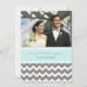 Elopement faire-part en ludique et moderne pastel bleu turquoise, gris et blanc chevron rétro zigzags motif, entièrement personnalisable avec vos noms, photo mariage et détails mariages, la manière parfaite d'annoncer que vous avez fui à amis et famille. Disponible dans une large gamme de produits mariages correspondants.