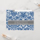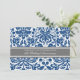 15th wedding anniversary party invitation card in elegant dark navy blue, grey and white classic and chic vintage floral damask pattern, delicate and contemporary. Customizable with your party details.